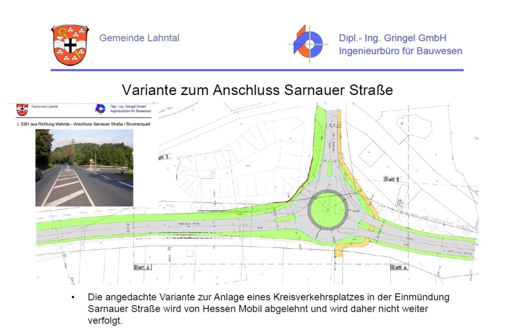 Zunächst teilte Bürgermeister Manfred Apell mit, dass der in der Bürgerschaft mit großer Mehrheit gut geheißene Vorschlag eines Kreisverkehrsplatzes in der Einmündung Sarnauer Straße von Hessen Mobil abgelehnt wurde und daher zunächst nicht weiter verfolgt werde.