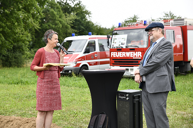 Landrätin Kirsten Fründt überbringt die wichtige Baugenehmigung für den Neubau