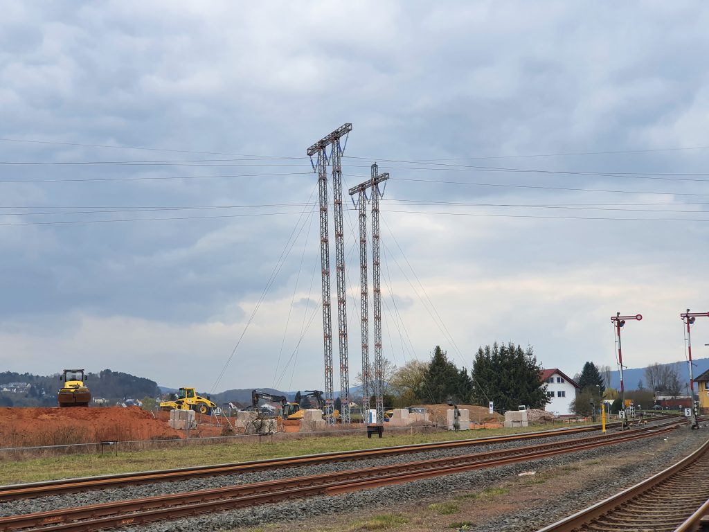 Aber nicht nur in den Gleisbereichen finden Arbeiten statt. Das gesamte Baufeld wird für die kommenden Bauarbeiten vorbereitet. So werden im Bereich des Baufeldes der Lahntalradweg umverlegt und die B 62 so verschwenkt, dass anschließend mit den Bauarbeiten für das Kreuzungsbauwerk BW 25 begonnen werden kann.