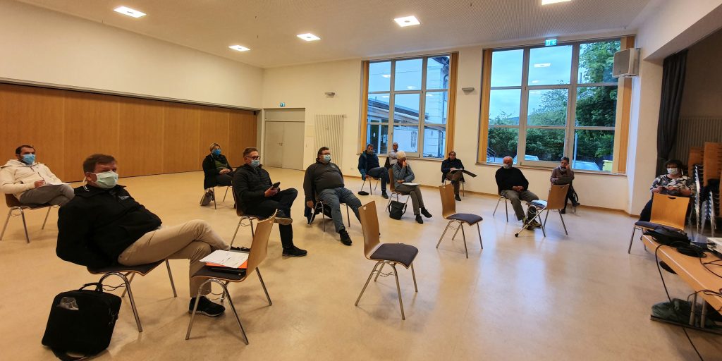 Das Procedere war den Umständen angepasst: Statt wie ansonsten in der Gemeindeverwaltung fand die Sitzung im Calderner Bürgerhaus statt, denn dort waren die erforderlichen Abstandsvorgaben einzuhalten. Und auch die „Mund-Nase-Bedeckung“ kam fast bei allen zum Einsatz.