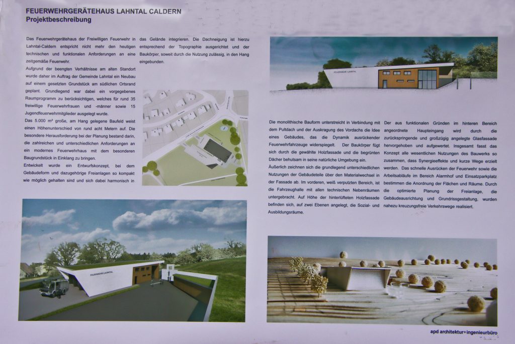 Die Lahntaler Kommunalpolitikerinnen und -Politiker hatten es sich bei der Standortwahl für den Calderner Neubau wahrlich nicht leicht gemacht. Wertvolle Hilfe erhielten sie dabei durch die Lahntaler Freiwillige Feuerwehr, die in einer detaillierten Dokumentation alle nur möglichen Standorte auf ihre Umsetzbarkeit unter gesetzlichen Vorgaben überprüft hatte. Die Grundstücksfindung ging durch zahlreiche öffentliche Veranstaltungen, in denen die Gemeinde detailliert informierte.
