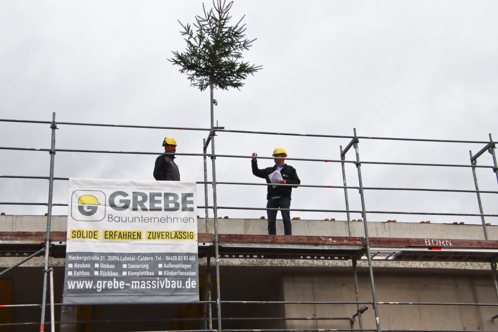 Und zwar nicht wegen des etwas dürren Richtbäumchens auf dem Rohbau, sondern dem regenverhangenen Wolkenhimmel.