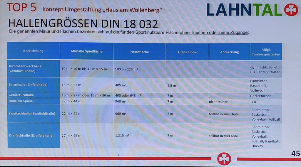 - Die Gemeinde Lahntal wird den Bau einer Multifunktionshalle für ganz Lahntal prüfen.