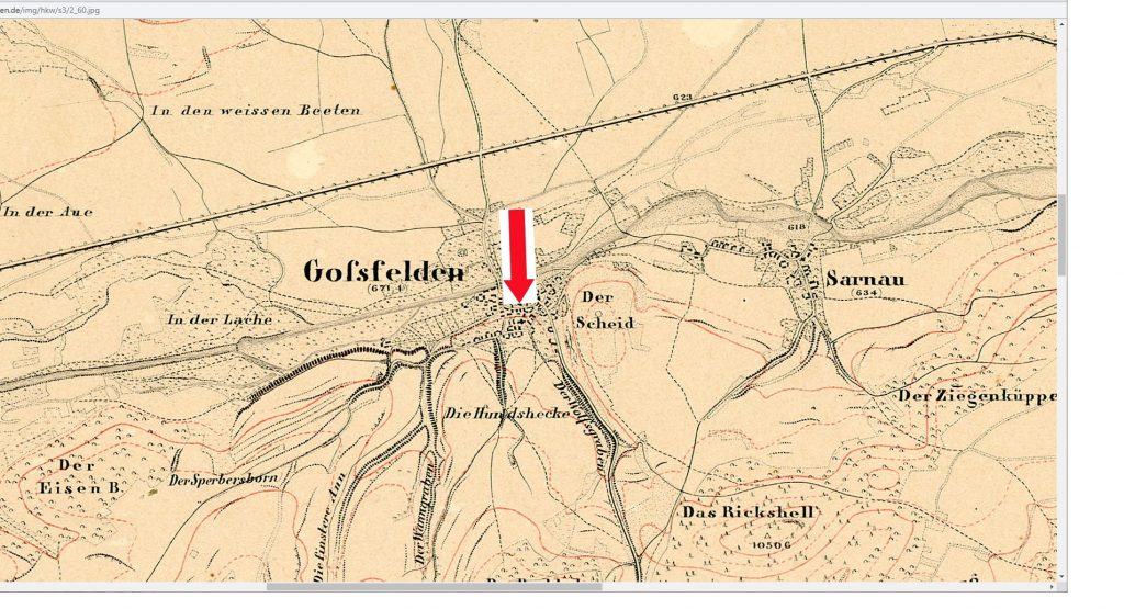 historische Karte „Gofsfelden“ aus LAGIS von 1857 – Pfeil auf Roßweg
