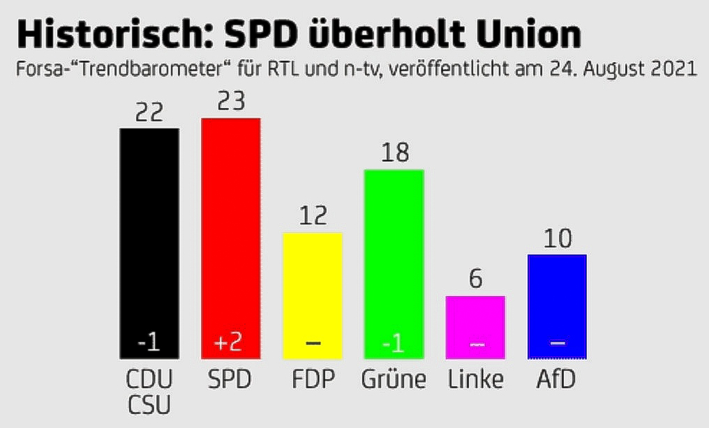 Mit dem aktuellen Forsa-Trend in den Zustimmungswerten für die SPD vom 24.8.2021, zeigt sich: