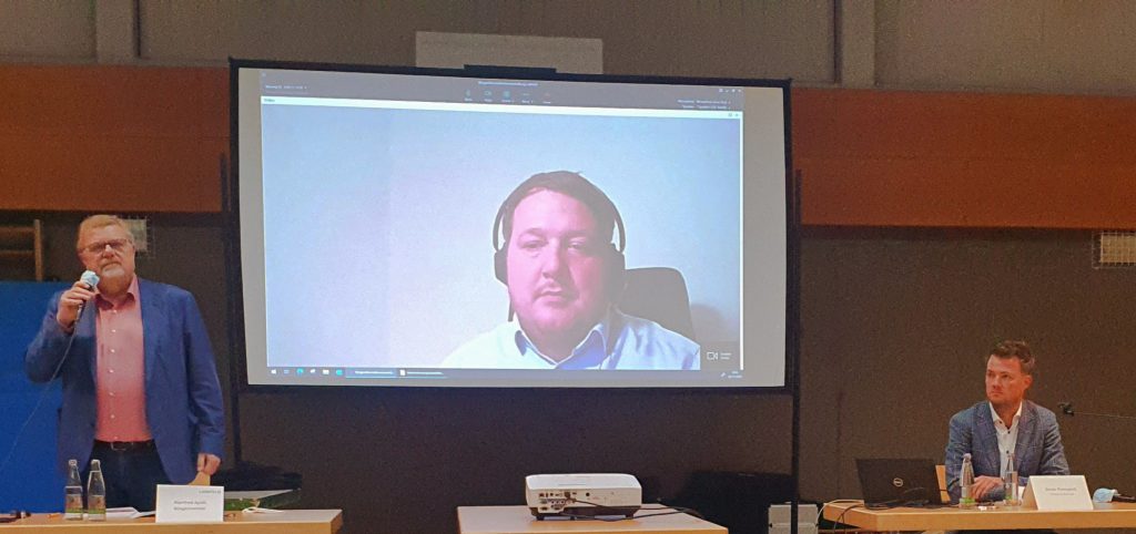 Für den Projekt-Investor Goodman stellte Jonas Ramspott, für den künftigen Betreiber Amazon Thorsten Freers – gesundheitsbedingt online zugeschaltet – ihren jeweiligen Part vor, bevor Bürgermeister Manfred Apell anschließend die Aussprache moderierte.