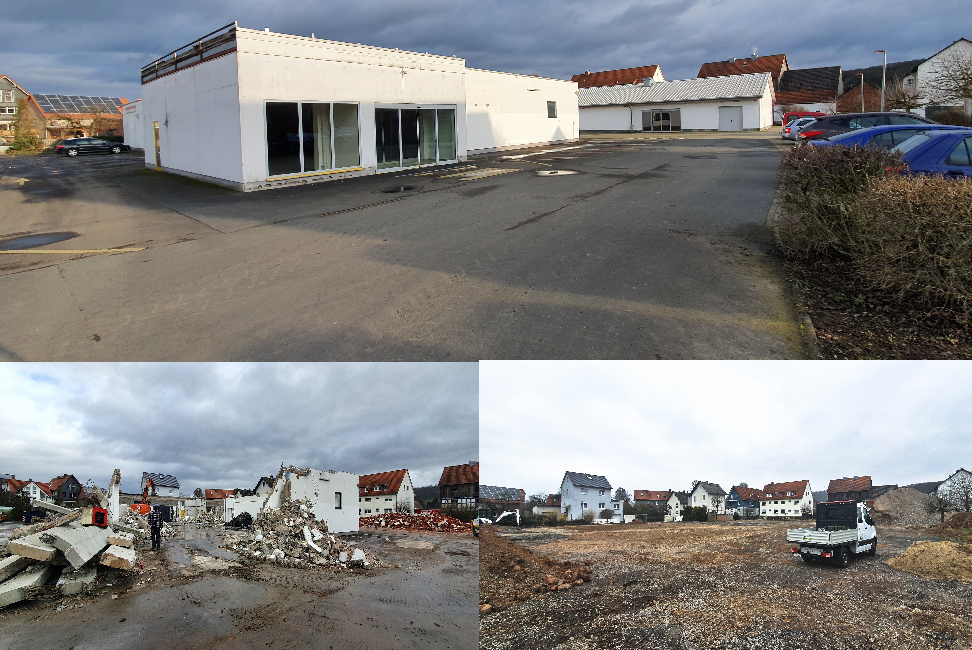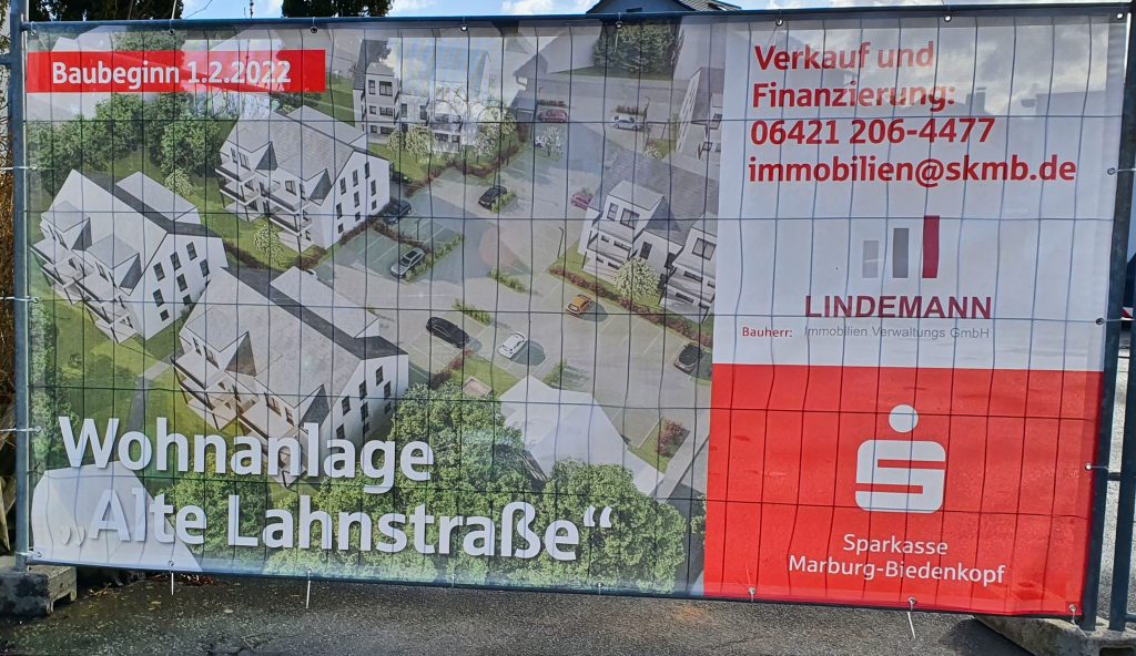 Die Grundstücke des ehemaligen REWE-Marktes in Sterzhausen, Alte Lahnstraße / Heligweg wurden an einen Investor verkauft. Die Lindemann Immobilien-Verwaltungs GmbH.hat inzwischen die bisherigen Marktgebäude zurückgebaut und errichtet auf dem Gelände 6 Mehrfamilienhäuser mit jeweils 5 Wohnungen á 91 m und eine Wohnung á 65m .