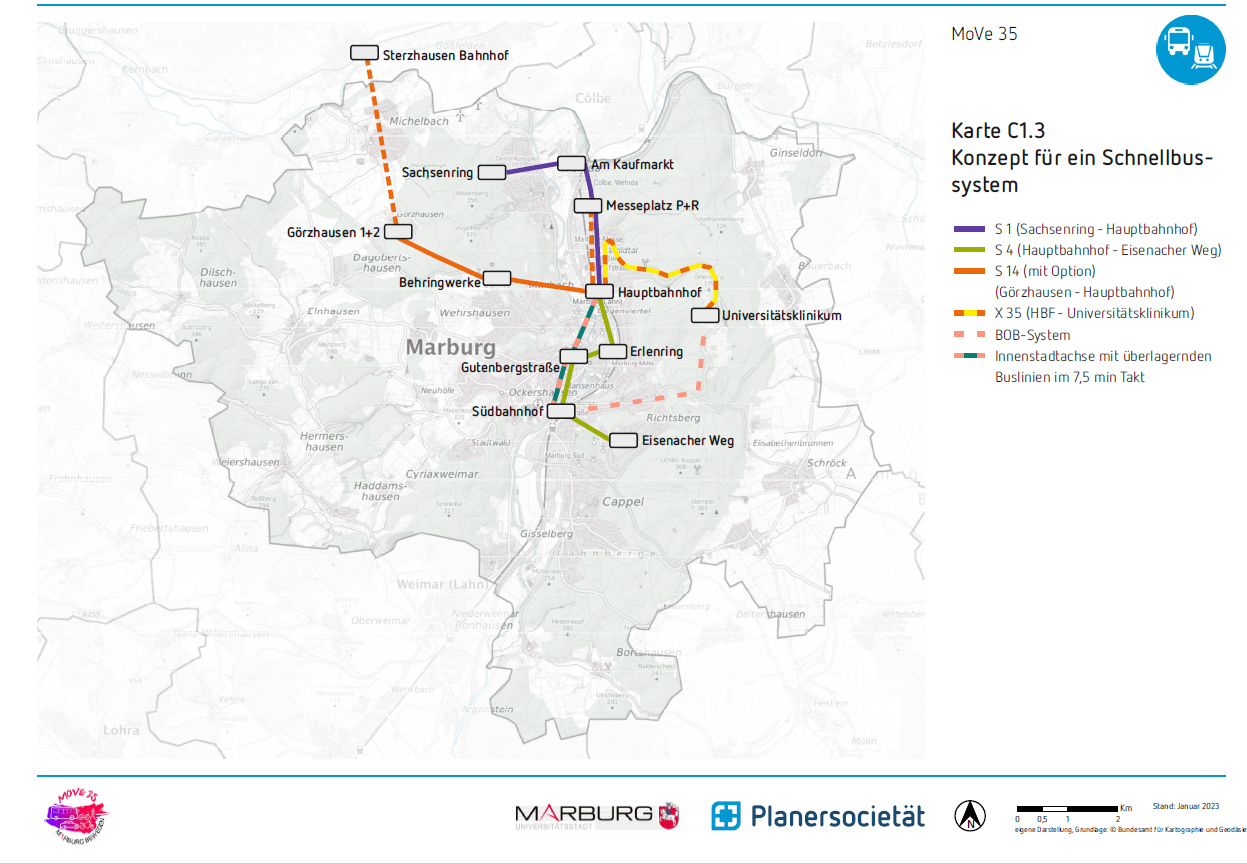 Die Universitätsstadt Marburg ist mit ihrem Mobilitätskonzept MOVE35 aktuell dabei, die Weichen für eine grundlegende Veränderung der Verkehrsstruktur in ihrem Stadtgebiet zu stellen.