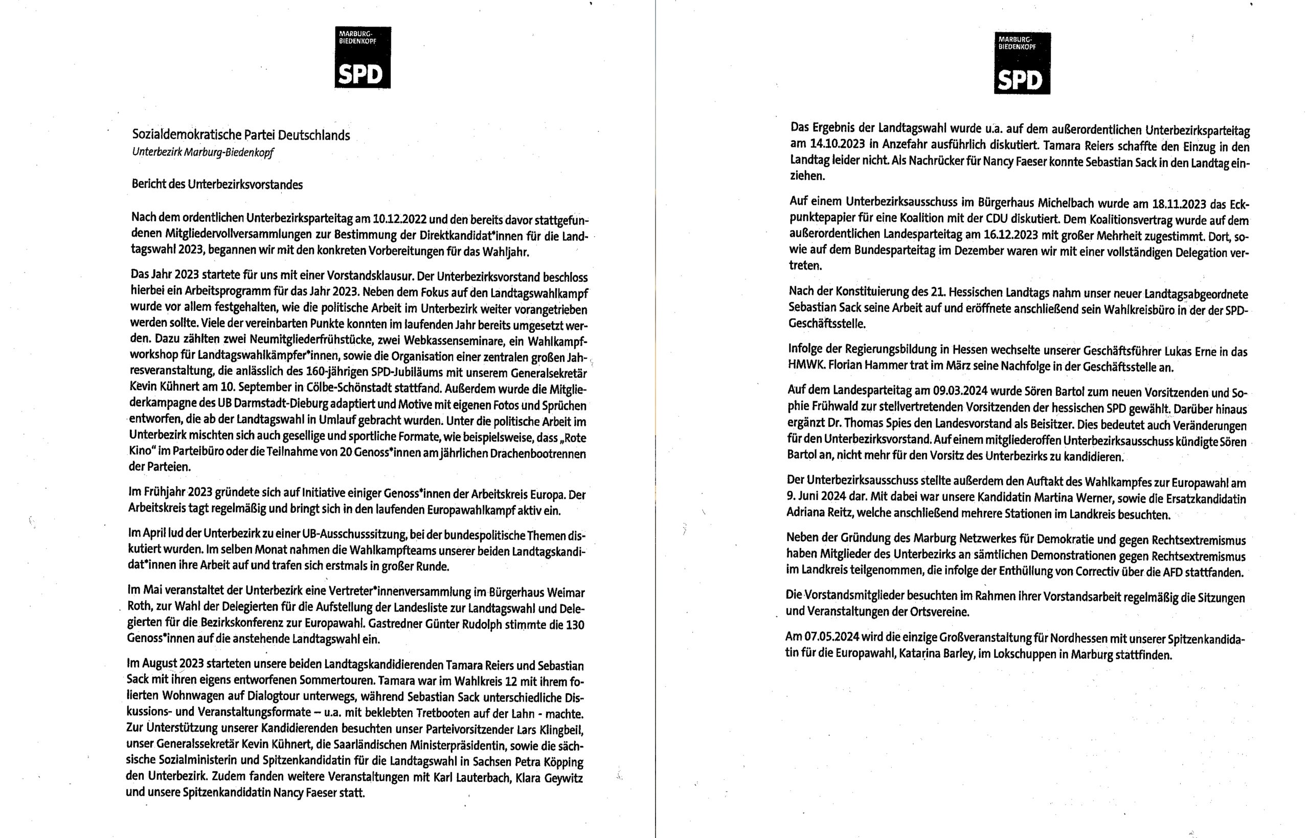 In seinem letzten Rechenschaftsbericht als Vorsitzender ließ Sören Bartol die Zeit nach dem Unterbezirksparteitag am 10.12.2022 noch einmal Revue passieren (Der Bericht ist nachstehend beigefügt)