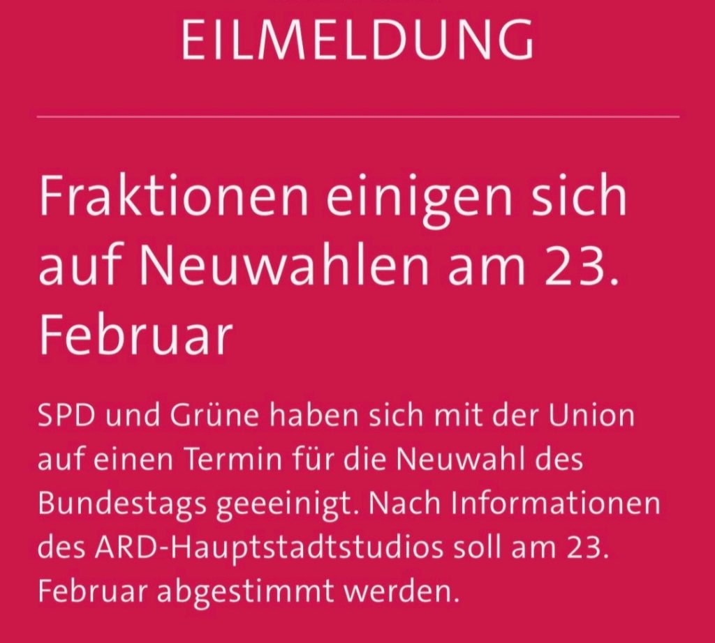 Bundestags-Neuwahlen für den 23. Februar 2025 geplant