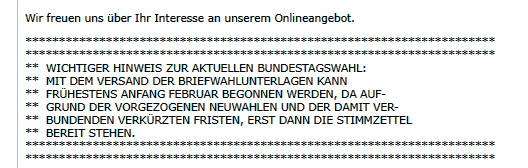 DIE ZUSENDUNG DER BRIEFWAHLUNTERLAGEN KANN JEDOCH ERST ANFANG FEBRUAR ERFOLGEN