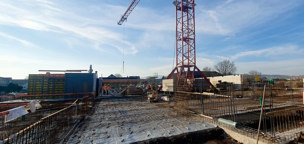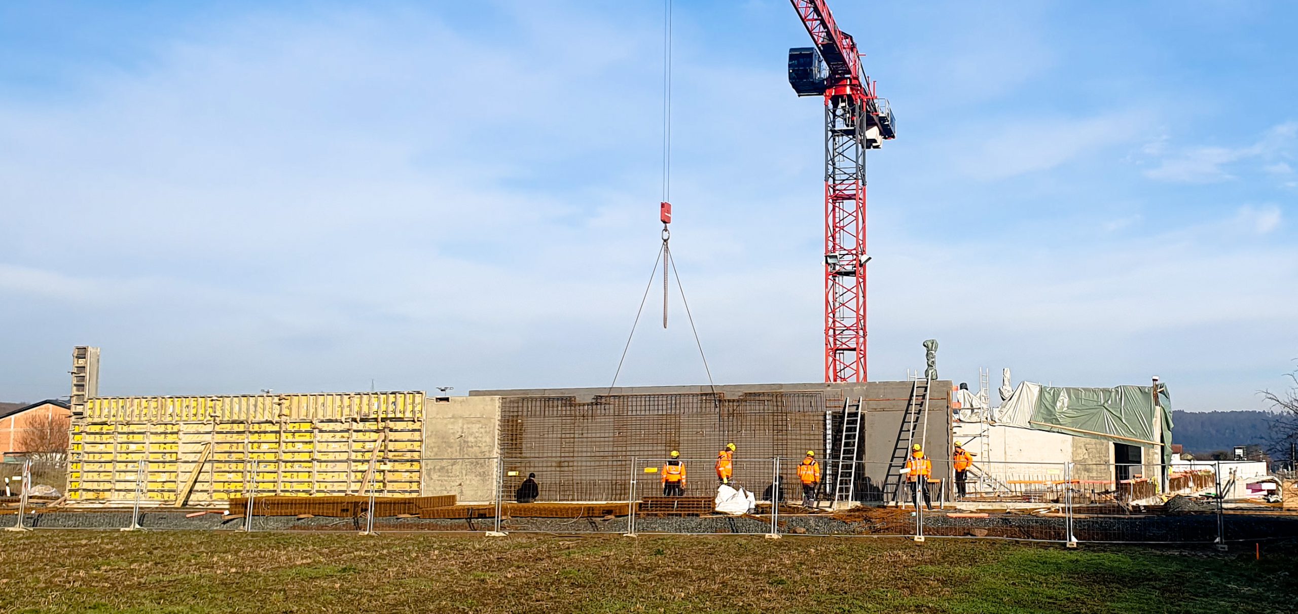 der Fortschritt der Arbeiten an der Multifunktionshalle in Lahntal-Goßfelden ist sichtbar