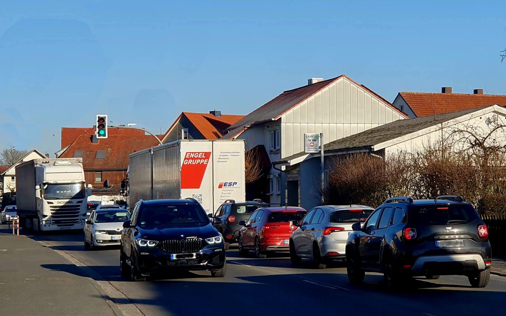 Die B 62 ist mittlerweile, vor allem zur sogenannten „rushhour“ so stark frequentiert, dass ein gefahrloses Überqueren nur noch an den ampelgeregelten Übergängen möglich ist.