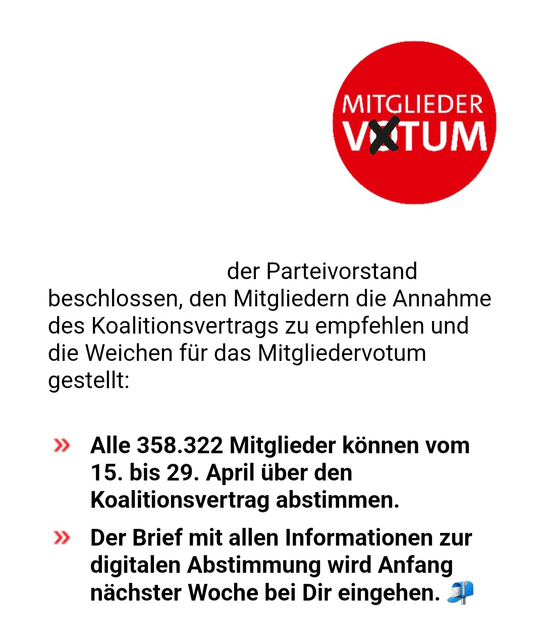 Ab 15.4.25 Mitgliederentscheid zum Koalitionsvertrag